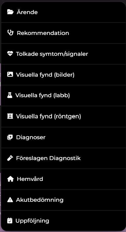 Ikon för systembar: Ladda ner rapporter, journaler, se vad diagnosio baserar sina beslut på m.m